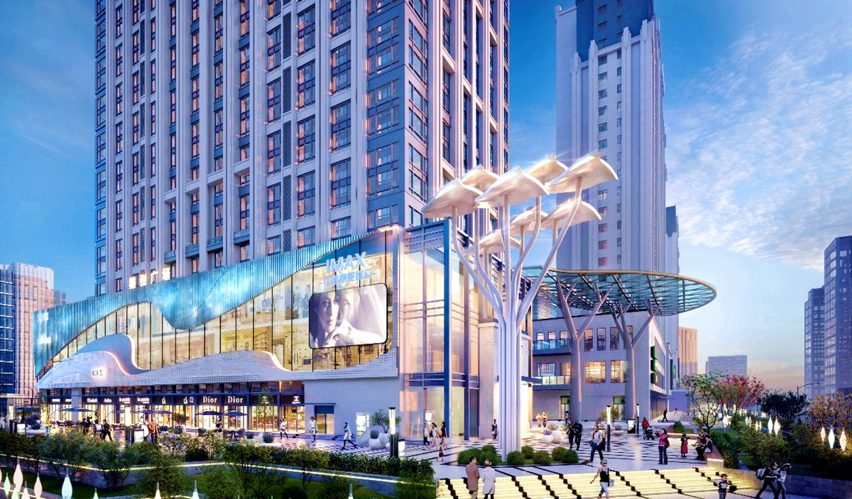 南側(cè)地塊為商業(yè)地塊,命名星悅廣場(chǎng),2棟稀缺復(fù)式公寓,2棟輕奢小戶型和3棟獨(dú)立商業(yè)。下沉式商業(yè)廣場(chǎng)為主,充分滿足小區(qū)及區(qū)域的商業(yè)配套,下沉式商業(yè)廣場(chǎng)兼容了購(gòu)物、休閑和娛樂的功能,足不出戶滿足業(yè)主的綜合需求,旨在將該廣場(chǎng)打造為大學(xué)城的時(shí)尚商業(yè)綜合體。除此之外,該地塊還配建有兩個(gè)大型的生活廣場(chǎng),一個(gè)為體健廣場(chǎng),一個(gè)為音樂廣場(chǎng),充分滿足了業(yè)主及周邊人口的運(yùn)動(dòng)及休閑需求。
